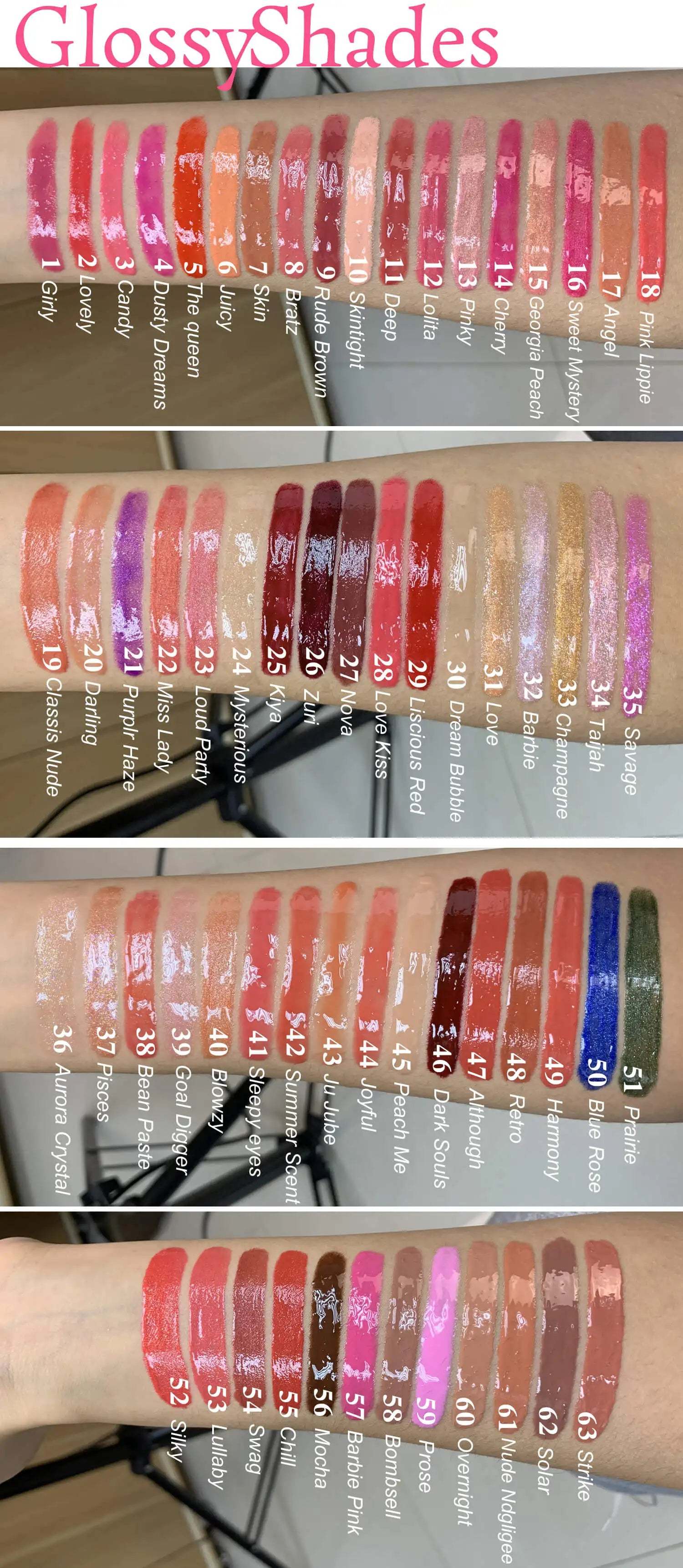 Glossy Shades: The Glossy Shades series offers a wide variety of shades, from fresh and delicate nude colors to passionate and vibrant red hues. After application, the lips seem to be given a layer of hydrating glow, plump and full of dimension, showing tenderness and sexiness.